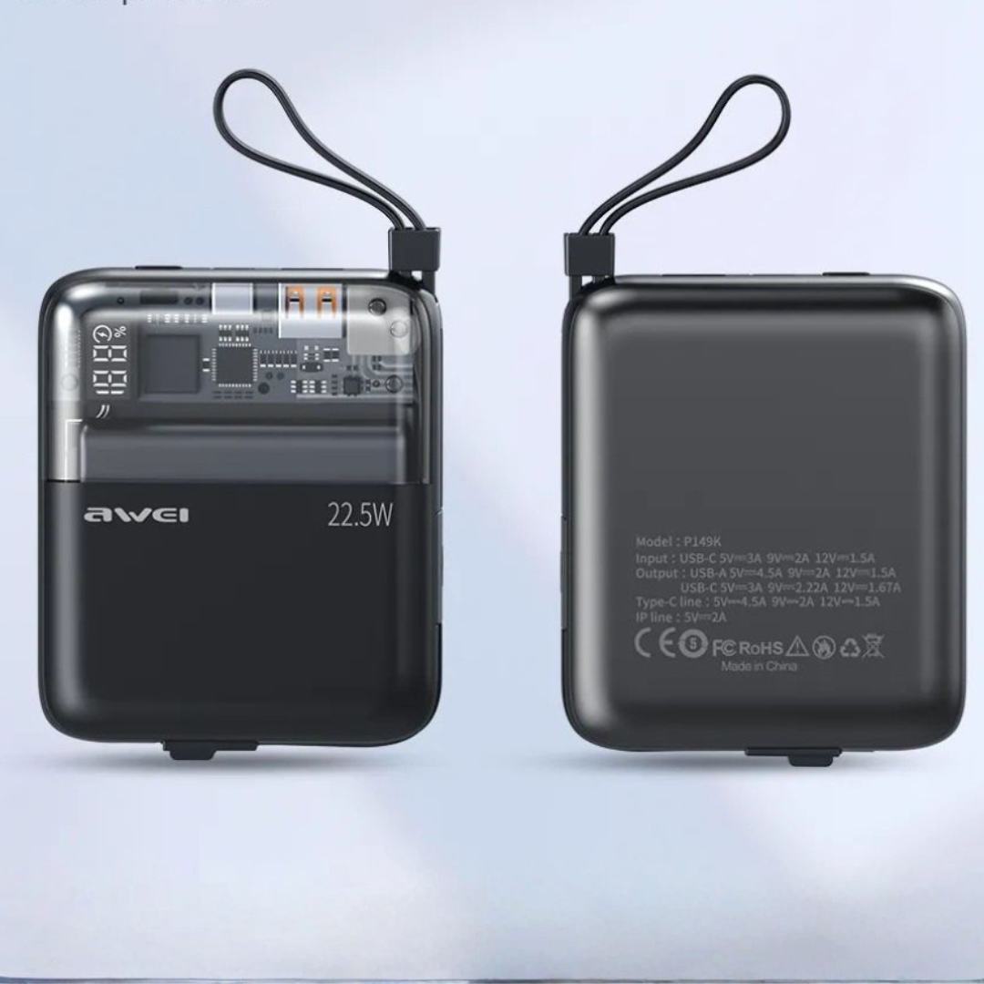 The Awei P149K 22.5W Fast Charging Power Bank (10000mAh) brings a smart solution to your daily charging problems. With its compact design, fast-charging technology, and reliable performance, it can be a perfect choice for daily use.