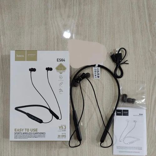 Hoco ES64 Sports Earphone is a premium quality wireless neckband earphone, specially designed for sports, gym, travel, and daily use. With its powerful battery, stable Bluetooth connection, and comfortable design, it is a great choice within the budget. Hoco ES64 Sports Earphones will make your daily life easier and more entertaining. Its stable connection and long battery life will give you an uninterrupted music experience while at the gym, running, or traveling. It is also a reliable device for calling and online meetings. Buy Original Hoco ES64 Sports Bluetooth Headphones at the best price. 30-hour battery life, Bluetooth 5.3, and super-bass sound. Best neckband for gym and running.